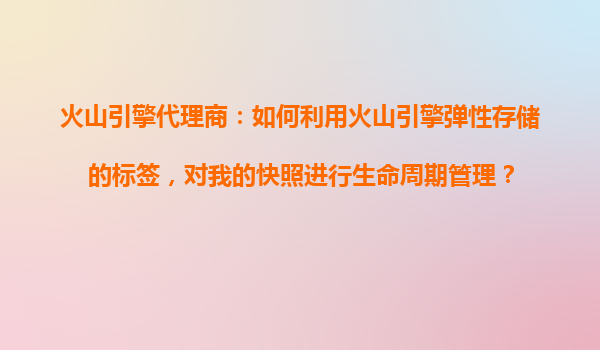 4008-020-360 火山引擎代理商:如何利用火山引擎彈性存儲的標(biāo)簽,對我的快照進行生命周期管理? 一、火山引擎彈性存儲的核心優(yōu)勢 作為字節(jié)跳動旗下的云計算服務(wù)品牌,火山引擎彈性存儲在快照管理方面具有以下核心優(yōu)勢: 智能...