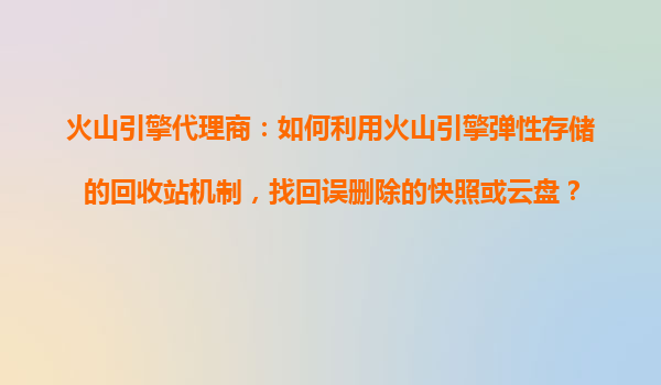2025-11-01火山引擎代理商:如何利用火山引擎彈性存儲的回收站機制找回誤刪除的快照或云盤? 引言 在日常的云存儲操作中,誤刪數(shù)據(jù)是一個常見但令人頭疼的問題。無論是快照還是云盤,一旦被誤刪除,可能...