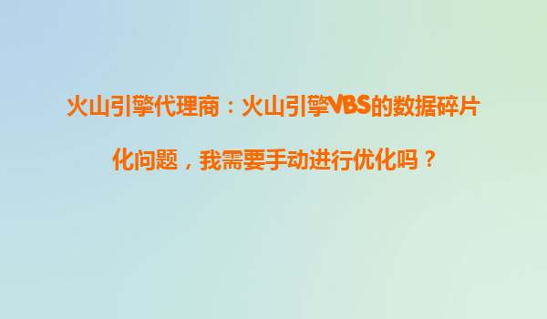 2025-11-01火山引擎代理商:火山引擎VBS的數(shù)據(jù)碎片化問題及優(yōu)化方案 一、數(shù)據(jù)碎片化的定義與影響 數(shù)據(jù)碎片化是指存儲系統(tǒng)中的數(shù)據(jù)因頻繁寫入、刪除或修改而分散在物理存儲介質(zhì)的多個區(qū)域,導(dǎo)...