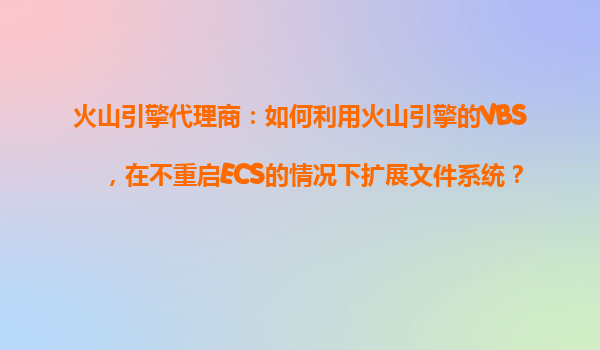 2025-10-31火山引擎代理商指南:如何利用VBS在不重啟ECS的情況下擴展文件系統(tǒng) 引言 在云計算時代,企業(yè)需要靈活擴展存儲資源以應對業(yè)務增長?;鹕揭孀鳛樽止?jié)跳動旗下的云服務平臺,其塊存儲服務(VBS)為彈性計算服務(ECS...