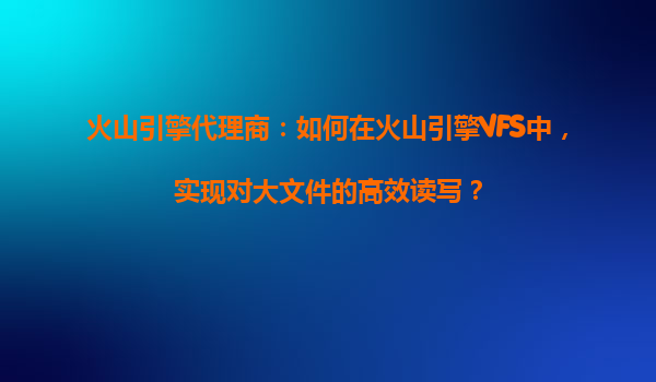 2025-10-31火山引擎代理商:如何在火山引擎VFS中實現對大文件的高效讀寫? 一、火山引擎VFS的核心優(yōu)勢 火山引擎(VolcanoEngine)作為字節(jié)跳動旗下的云計算服務平臺,其...