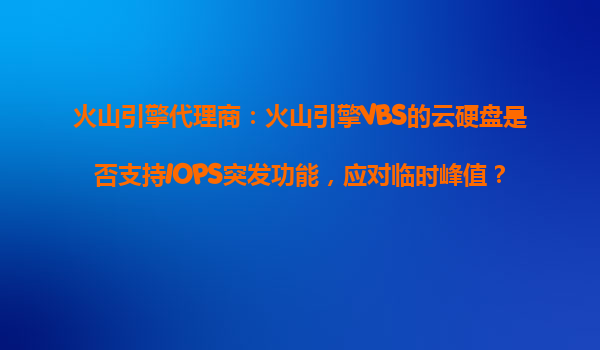 2025-10-31火山引擎代理商解析:火山引擎VBS云硬盤的IOPS突發(fā)功能如何應對臨時峰值? 一、火山引擎VBS云硬盤的核心特性 火山引擎作為字節(jié)跳動旗下的云計算品牌,其云硬盤服務(VolcanoBlockS...
