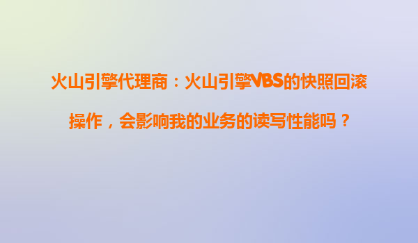 2025-10-31火山引擎VBS快照回滾操作對業(yè)務讀寫性能的影響解析 在日常業(yè)務運維中,數據安全與業(yè)務連續(xù)性是企業(yè)最關心的核心問題之一?;鹕揭嫣峁┑脑朴脖P服務(VBS)通過快照功能為用戶提供了高效的數據保護方案,而...