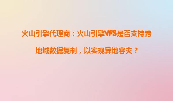 2025-10-29火山引擎代理商:火山引擎VFS是否支持跨地域數(shù)據(jù)復(fù)制,以實(shí)現(xiàn)異地容災(zāi)? 一、火山引擎VFS的核心能力與異地容災(zāi)需求 火山引擎作為字節(jié)跳動(dòng)旗下的云服務(wù)平臺(tái),其文件存儲(chǔ)服務(wù)VFS(VolcanoEngineFileS...