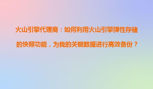 2025-10-27火山引擎代理商:如何利用火山引擎彈性存儲(chǔ)的快照功能為關(guān)鍵數(shù)據(jù)進(jìn)行高效備份 一、火山引擎彈性存儲(chǔ)與快照功能的優(yōu)勢(shì) 火山引擎作為字節(jié)跳動(dòng)旗下的云服務(wù)平臺(tái),其彈性存儲(chǔ)(ES)服務(wù)以高可用性、彈性...