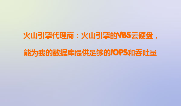 2025-10-27火山引擎代理商:火山引擎的VBS云硬盤,能為我的數(shù)據(jù)庫(kù)提供足夠的IOPS和吞吐量嗎? 在當(dāng)今云計(jì)算和大數(shù)據(jù)時(shí)代,數(shù)據(jù)庫(kù)性能是企業(yè)數(shù)字化轉(zhuǎn)型的關(guān)鍵因素之一。其中,存儲(chǔ)系統(tǒng)的IOPS(每秒輸入/輸出操作數(shù))和吞...