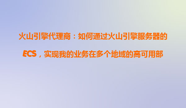 4008-020-360 火山引擎代理商:如何通過火山引擎服務器的ECS,實現(xiàn)業(yè)務在多個地域的高可用部署 一、什么是火山引擎ECS及其高可用部署的核心價值 火山引擎的彈性計算服務(ElasticComputeService,ECS)是一種...