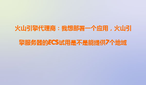 2025-10-25火山引擎代理商指南:ECS試用與多地域選擇的優(yōu)勢解析 一、火山引擎ECS試用:7大地域靈活部署 作為火山引擎代理商,我們常被客戶問及一個問題:"火山引擎的ECS云服務器試用是否支持多地域選擇?"答案是肯定...