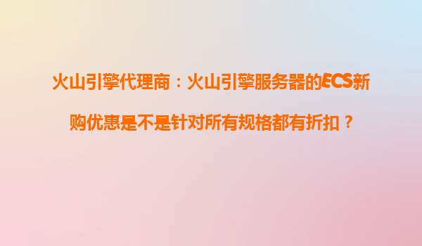 4008-020-360 火山引擎代理商:火山引擎服務(wù)器的ECS新購(gòu)優(yōu)惠解讀與優(yōu)勢(shì)分析 一、火山引擎ECS新購(gòu)優(yōu)惠的覆蓋范圍 許多用戶在選擇火山引擎服務(wù)器時(shí),首先會(huì)關(guān)注其新購(gòu)優(yōu)惠政策的具體適用條件。關(guān)于“ECS新購(gòu)優(yōu)惠是否覆...