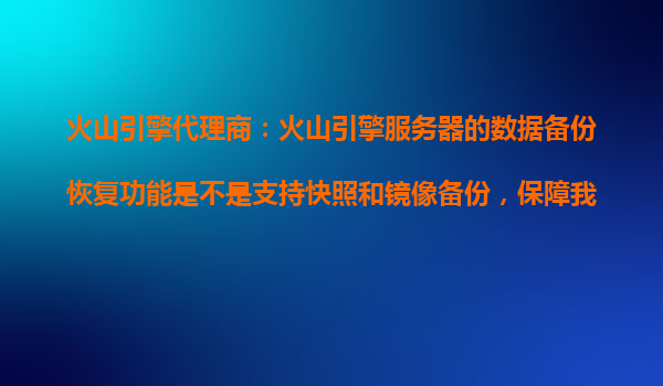 2025-10-23火山引擎代理商介紹:數(shù)據(jù)備份恢復(fù)功能全面解析 作為火山引擎的代理商,我們深知企業(yè)在數(shù)字化轉(zhuǎn)型過程中對數(shù)據(jù)安全與可靠性的高度需求?;鹕揭嫣峁┑脑品?wù)器(ECS)不僅性能卓越,更通過高效的備份恢復(fù)功能保障用...