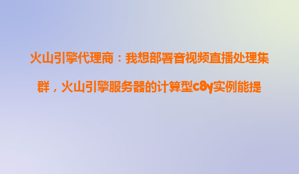 2025-10-23火山引擎代理商:如何通過計(jì)算型C8Y實(shí)例提升音視頻直播轉(zhuǎn)碼效率? 一、音視頻直播處理集群的核心挑戰(zhàn) 隨著直播行業(yè)的快速發(fā)展,企業(yè)對實(shí)時(shí)音視頻處理能力的需求...