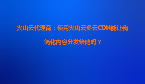 2025-09-29火山云代理商:使用火山云多云CDN如何簡化您的內(nèi)容分發(fā)策略? 一、內(nèi)容分發(fā)的挑戰(zhàn)與多云CDN的崛起 在數(shù)字經(jīng)濟(jì)時代,快速、穩(wěn)定的內(nèi)容分發(fā)已成為企業(yè)在線業(yè)務(wù)成功的關(guān)鍵因素。然而,傳統(tǒng)單一C...