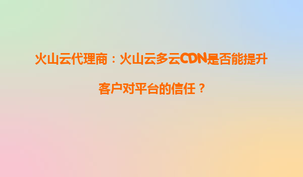 2025-09-29火山云代理商:火山云多云CDN如何提升客戶對平臺的信任 在當(dāng)今的數(shù)字化時代,內(nèi)容分發(fā)網(wǎng)絡(luò)(CDN)已成為企業(yè)提升用戶體驗(yàn)、確保業(yè)務(wù)穩(wěn)定的關(guān)鍵基礎(chǔ)設(shè)施。火山引擎作為字節(jié)跳動旗下的云服務(wù)品牌,憑借...