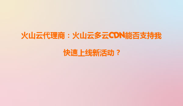 4008-020-360 火山云代理商:火山云多云CDN如何助力企業(yè)快速上線新活動(dòng)? 一、快速上線的核心挑戰(zhàn) 在數(shù)字化營銷時(shí)代,企業(yè)新活動(dòng)上線往往面臨突發(fā)流量壓力、全球訪問延遲、資...