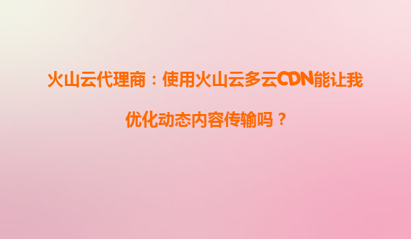 2025-09-26火山云代理商:使用火山云多云CDN能讓我優(yōu)化動(dòng)態(tài)內(nèi)容傳輸嗎? 一、火山云多云CDN的核心優(yōu)勢 火山云多云CDN是火山引擎基于全球化資源和技術(shù)能力推出的內(nèi)容分發(fā)網(wǎng)絡(luò)服務(wù),其核心優(yōu)勢在于通過智能調(diào)...