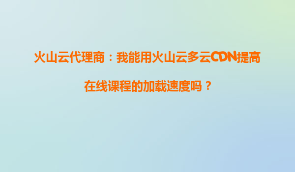 2025-09-25火山云代理商:如何用火山云多云CDN提升在線課程的加載速度? 一、在線課程加載速度的重要性 在數(shù)字化教育快速發(fā)展的今天,在線課程已成為學(xué)習(xí)的主流方式之一。...