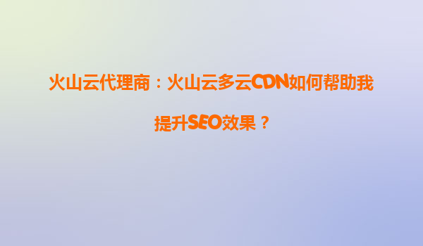 2025-09-26火山云代理商:火山云多云CDN如何幫助提升SEO效果? 引言 在當(dāng)今數(shù)字化時(shí)代,網(wǎng)站的加載速度和穩(wěn)定性直接影響用戶體驗(yàn)和搜索引擎排名。作為企業(yè)或開發(fā)者,如何...