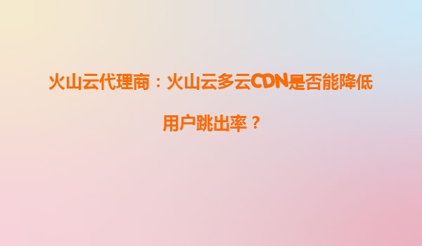 2025-09-26火山云代理商:火山云多云CDN如何有效降低用戶跳出率? 在當(dāng)今數(shù)字化時(shí)代,網(wǎng)站和應(yīng)用的加載速度直接影響用戶體驗(yàn)和商業(yè)轉(zhuǎn)化。用戶對(duì)頁面加載的耐心越來越低,據(jù)統(tǒng)計(jì),超過50%的用戶會(huì)在頁面加載時(shí)間超過3秒...