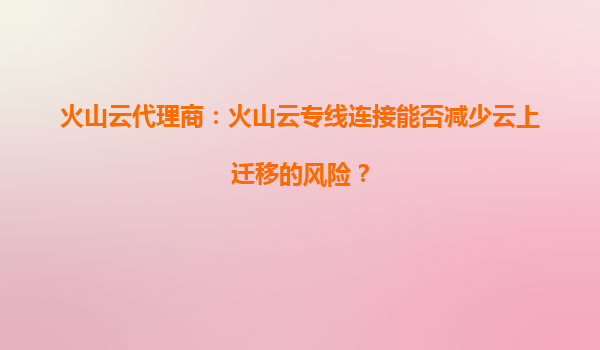 2025-09-24火山云代理商:火山云專線連接能否減少云上遷移的風(fēng)險(xiǎn)? 一、云上遷移的常見(jiàn)風(fēng)險(xiǎn)與挑戰(zhàn) 企業(yè)進(jìn)行云端遷移時(shí),往往面臨數(shù)據(jù)安全、網(wǎng)絡(luò)延遲、服務(wù)中斷等多重風(fēng)險(xiǎn): 數(shù)據(jù)泄...