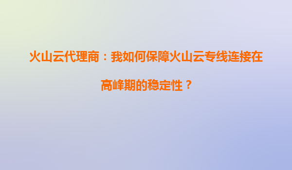 2025-09-23火山云代理商:我如何保障火山云專線連接在高峰期的穩(wěn)定性? 一、火山引擎核心技術(shù)優(yōu)勢(shì) 作為字節(jié)跳動(dòng)旗下企業(yè)級(jí)技術(shù)服務(wù),火山引擎專線服務(wù)依托其全球數(shù)據(jù)中心布局和自研網(wǎng)絡(luò)架構(gòu),從底層基礎(chǔ)設(shè)施...