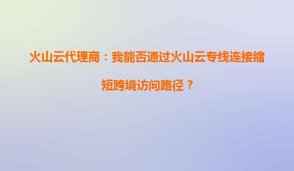2025-09-23火山云代理商:通過(guò)火山云專線連接優(yōu)化跨境訪問(wèn)路徑的解決方案 一、跨境網(wǎng)絡(luò)訪問(wèn)的痛點(diǎn)與挑戰(zhàn) 隨著全球化進(jìn)程加速,企業(yè)對(duì)跨境業(yè)務(wù)的依賴度日益提升,但傳統(tǒng)公網(wǎng)跨境訪問(wèn)普遍存在以下問(wèn)...