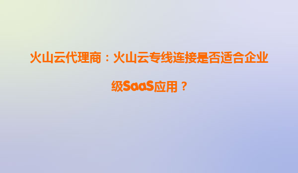 2025-09-23火山云代理商:火山云專線連接是否適合企業(yè)級(jí)SaaS應(yīng)用? 隨著云計(jì)算技術(shù)的快速發(fā)展,企業(yè)級(jí)SaaS(軟件即服務(wù))應(yīng)用已成為現(xiàn)代企業(yè)數(shù)字化轉(zhuǎn)型的重要工具。然而,如何確保這些應(yīng)用的穩(wěn)定、高效和安全運(yùn)行,始...