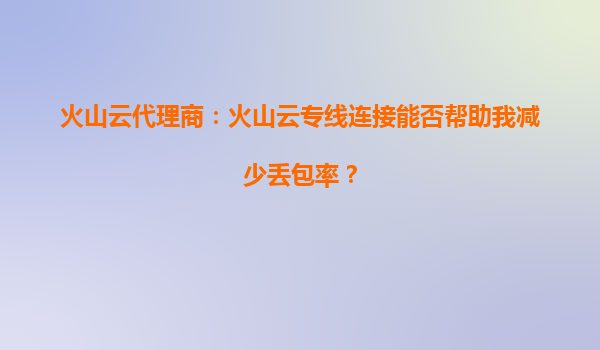2025-09-23火山云代理商:火山云專線連接如何顯著降低網(wǎng)絡(luò)丟包率? 一、網(wǎng)絡(luò)丟包率的痛點(diǎn)與火山云專線的價(jià)值 在網(wǎng)絡(luò)通信中,丟包率是衡量服務(wù)質(zhì)量的核心指標(biāo)之一。高丟包...