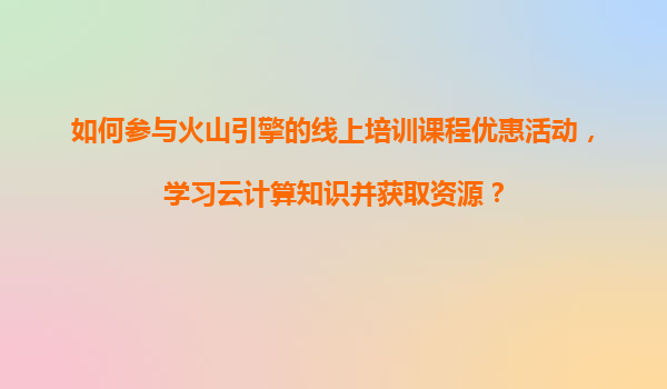 2025-11-06如何參與火山引擎線上培訓(xùn)課程優(yōu)惠活動(dòng),高效學(xué)習(xí)云計(jì)算知識(shí)? 一、火山引擎線上培訓(xùn)課程簡(jiǎn)介 火山引擎是字節(jié)跳動(dòng)旗下的云服務(wù)平臺(tái),為企業(yè)和開(kāi)發(fā)者提供云計(jì)算、大數(shù)據(jù)、AI等技術(shù)支持。其線上培訓(xùn)課程體系...