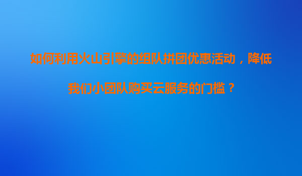 2025-11-06如何利用火山引擎的組隊(duì)拼團(tuán)優(yōu)惠活動(dòng),降低小團(tuán)隊(duì)購(gòu)買(mǎi)云服務(wù)的門(mén)檻? 一、火山引擎的云服務(wù)優(yōu)勢(shì)解析 火山引擎作為字節(jié)跳動(dòng)旗下的云計(jì)算品牌,憑借其在視頻直播、大數(shù)據(jù)處理等領(lǐng)域的核心技術(shù)積累,為中小企...