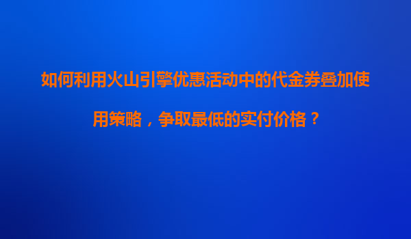 2025-11-06如何利用火山引擎優(yōu)惠活動(dòng)中的代金券疊加使用策略,爭(zhēng)取最低的實(shí)付價(jià)格? 一、火山引擎的核心優(yōu)勢(shì) 在探討代金券疊加策略前,首先需要了解火山引擎的獨(dú)特優(yōu)勢(shì): 全棧云服...
