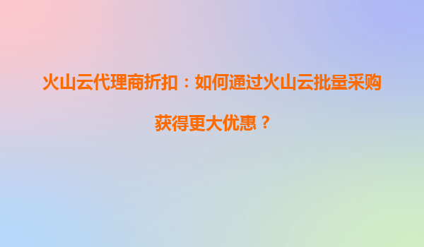 火山云代理商折扣:如何通過火山云批量采購獲得更大優(yōu)惠?