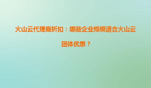 火山云代理商折扣:哪些企業(yè)規(guī)模適合火山云團(tuán)體優(yōu)惠?