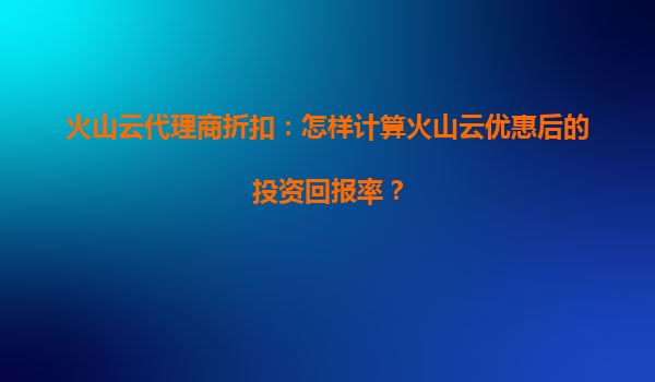 火山云代理商折扣與優(yōu)惠后的投資回報(bào)率計(jì)算指南