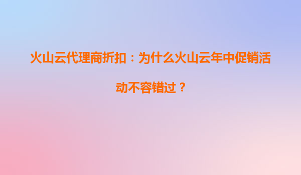 火山云代理商折扣:為什么火山云年中促銷活動(dòng)不容錯(cuò)過?