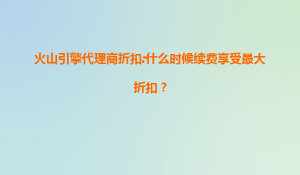 火山引擎代理商續(xù)費最大折扣時機(jī)及火山云優(yōu)勢解析