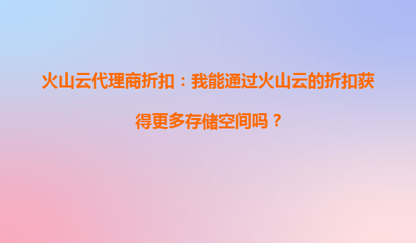 火山云代理商折扣:如何通過優(yōu)惠獲得更多存儲空間?