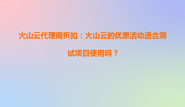 火山云代理商折扣:火山云的優(yōu)惠活動(dòng)適合測(cè)試項(xiàng)目使用嗎?
