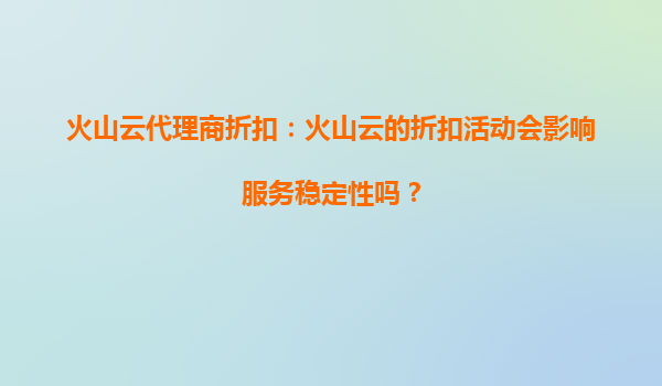 火山云代理商折扣:火山云的折扣活動(dòng)會(huì)影響服務(wù)穩(wěn)定性嗎?