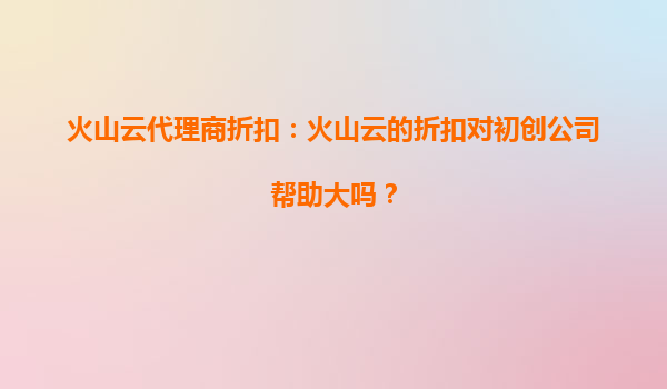 火山云代理商折扣:初創(chuàng)企業(yè)的“加速器”