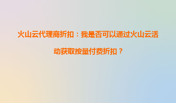 火山云代理商折扣:如何通過活動(dòng)獲取按量付費(fèi)優(yōu)惠?