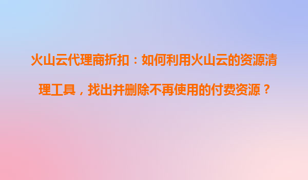2025-10-31如何利用火山云的資源清理工具優(yōu)化成本?——代理商折扣與資源管理全攻略 一、火山云資源清理的核心價值 隨著企業(yè)上云進程加速,未及時清理的閑置資源可能導(dǎo)致3...