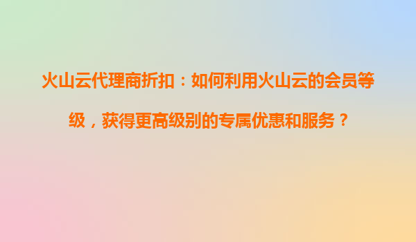 2025-10-31火山云代理商折扣:如何利用火山云的會員等級,獲得更高級別的專屬優(yōu)惠和服務(wù)? 1.火山云會員等級體系介紹 火山云作為一家領(lǐng)先的云計算服務(wù)提供商,為代理商和客戶提供了完善的會員等級體系。該...