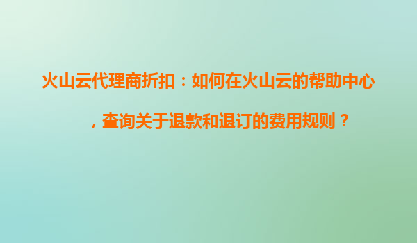 2025-10-31火山云代理商折扣:如何在火山云的幫助中心查詢退款和退訂費用規(guī)則 一、火山云的核心優(yōu)勢 火山云作為國內(nèi)領(lǐng)先的云計算服務(wù)提供商,依托字節(jié)跳動的技術(shù)積累,為用戶提供穩(wěn)定、安全、高效的云服務(wù)解...