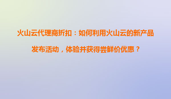 2025-10-30火山云代理商折扣:如何利用火山云的新產(chǎn)品發(fā)布活動,體驗并獲得嘗鮮價優(yōu)惠? 一、火山云及其代理商的核心優(yōu)勢 火山云作為領(lǐng)先的云計算服務(wù)提供商,憑借穩(wěn)定的基礎(chǔ)設(shè)施、彈性擴展能力及全球節(jié)...