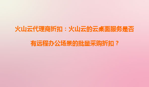 2025-10-30火山云代理商折扣:火山云云桌面服務(wù)的遠(yuǎn)程辦公批量采購方案解析 一、遠(yuǎn)程辦公場景下的云桌面需求背景 隨著企業(yè)數(shù)字化轉(zhuǎn)型加速,遠(yuǎn)程辦公逐漸成為常態(tài)化需求。云桌面(VDI)作為核心工具,能夠?qū)崿F(xiàn)數(shù)據(jù)集...