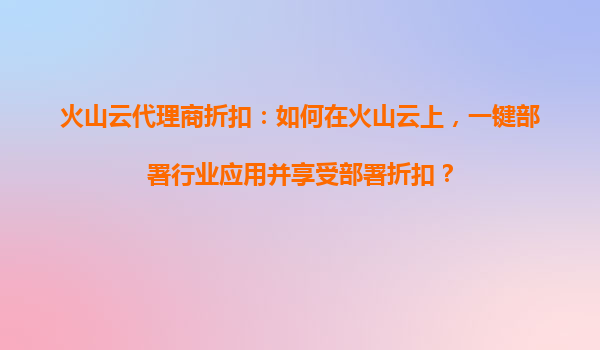 2025-10-30火山云代理商折扣:如何在火山云上,一鍵部署行業(yè)應(yīng)用并享受部署折扣? 一、火山云的核心優(yōu)勢 火山云作為字節(jié)跳動旗下的云計(jì)算服務(wù)平臺,具備高性能、高可靠性和全球化的基礎(chǔ)設(shè)施布局。其主要優(yōu)勢包括...