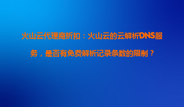 2025-10-30火山云代理商折扣:解析火山云DNS服務(wù)的優(yōu)勢與免費(fèi)限制 一、火山云DNS服務(wù)免費(fèi)解析記錄條數(shù)限制 火山云作為國內(nèi)領(lǐng)先的云計(jì)算服務(wù)提供商,其云解析DNS服務(wù)是許多企業(yè)和開...
