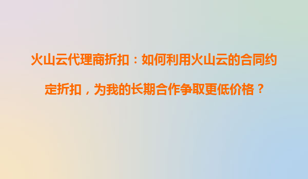 2025-10-30如何利用火山云的合同約定折扣,為長期合作爭取更低價(jià)格? 火山云的核心優(yōu)勢 在探討如何通過合同談判獲得更低價(jià)格前,首先要清楚火山云的核心競爭力,這將是你談判的重要籌碼: ...