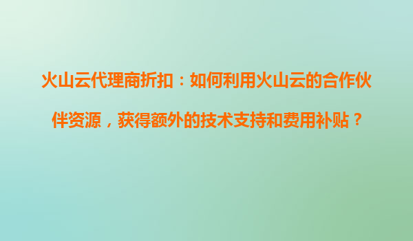 2025-10-30火山云代理商折扣:如何利用火山云的合作伙伴資源,獲得額外的技術(shù)支持和費(fèi)用補(bǔ)貼? 一、火山云代理商的價(jià)值定位 作為云計(jì)算服務(wù)的重要渠道,火山云代理商不僅肩負(fù)著市場拓展的責(zé)任,更是連...