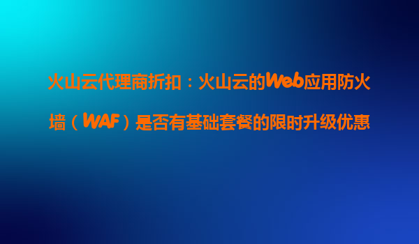 2025-10-30火山云Web應(yīng)用防火墻(WAF)限時(shí)升級優(yōu)惠活動解析 限時(shí)優(yōu)惠活動詳情 火山云近期針對Web應(yīng)用防火墻(WAF)基礎(chǔ)套餐用戶推出限時(shí)升級優(yōu)惠活動。在活動期間,新老用戶均可通過火山云代理商享受基...
